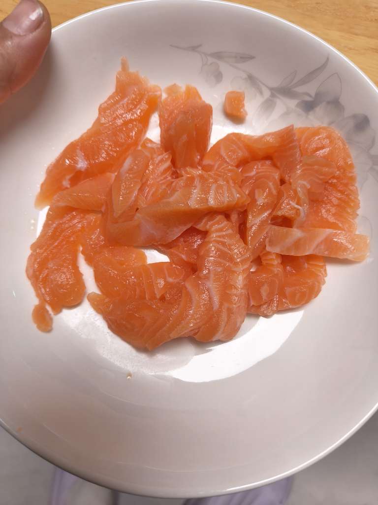 三文鱼78元一盒,便宜啊,必须整一盒,不过不吃时有点馋,吃了也就这样,没吃几块!我妈常说我和我弟弟吃了拉出来的她也没见过啥样